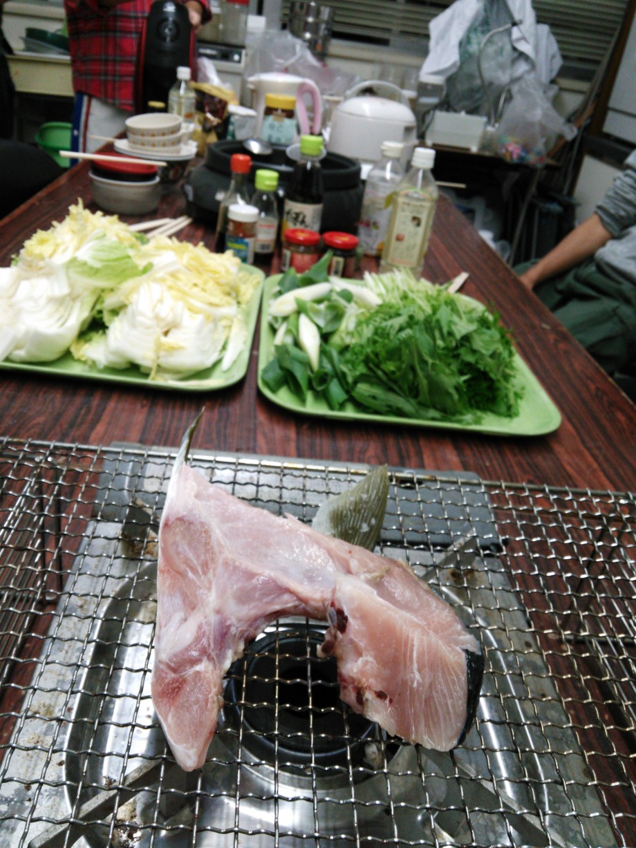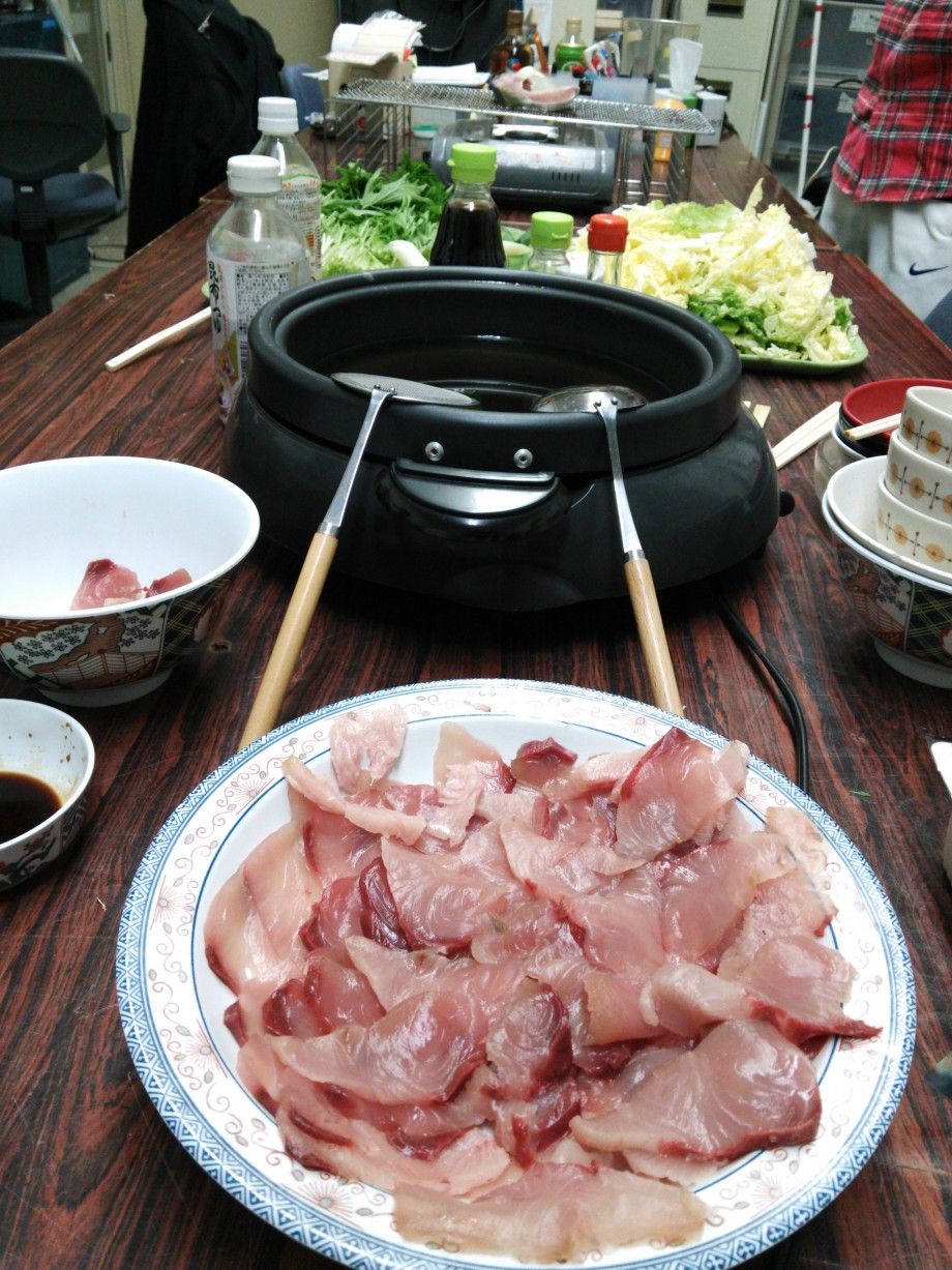 釣ったワラサは研究室で刺身で食べたり、しゃぶしゃぶしたり・・・・