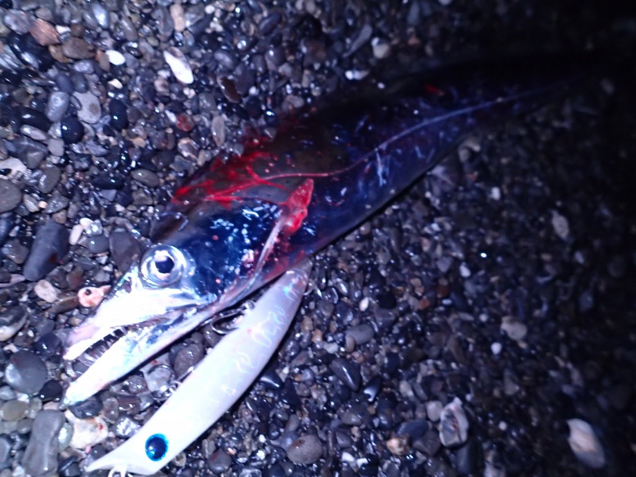 日没後、太刀魚が表層まで出てきてる時はジグよりミノーが効果的!!