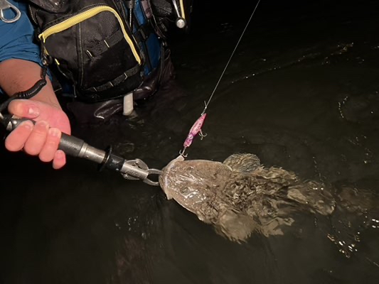 テリフで探るとショートバイト、スイッチヒッターの一番小さなサイズでバラすもロスト、バイブレーションは反応なく潮どまり前にキトキトで大きなマゴチをキャッチして終わりました。