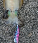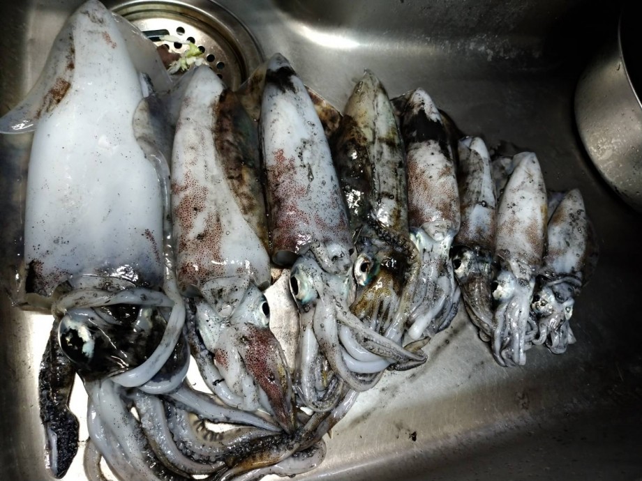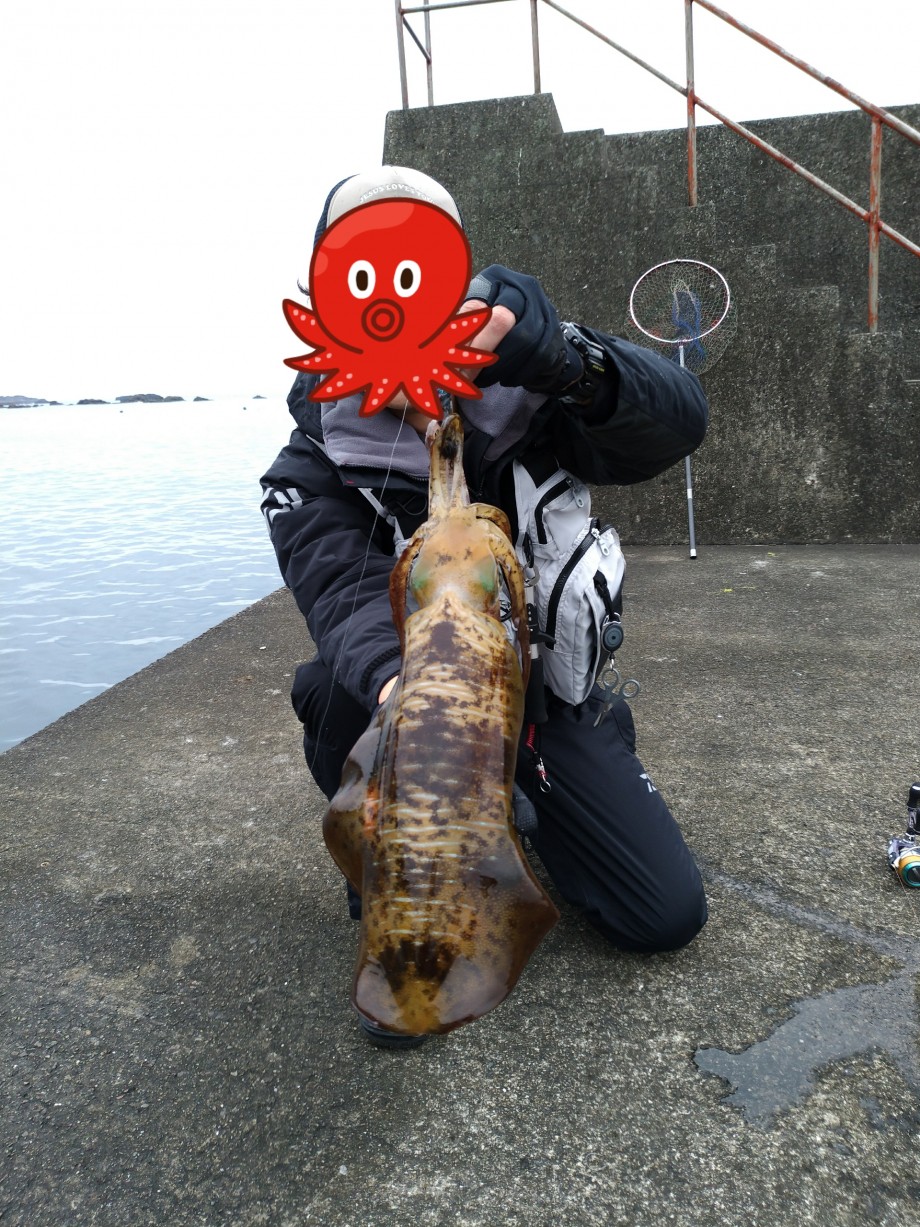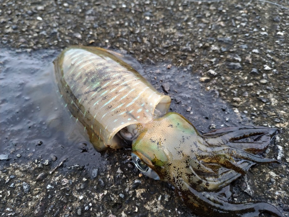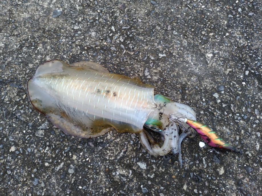 この日は潮の動きが出た瞬間にイカの当たりが出るパターン。その後もポツポツ拾い釣りしながら粘っていた昼頃…。