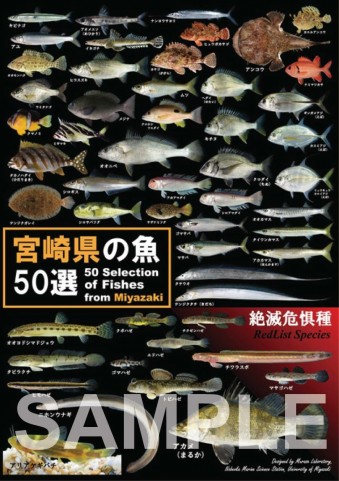 話は変わりますが、来週土曜日、宮崎大学の学祭があります。そこで、延岡フィールドからは、宮崎県お魚ポスターとポストカード、魚の透明骨格標本を販売します!!