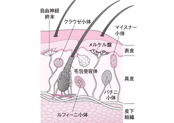 次に振動覚は皮膚のなかにあるパチニ小体、マイスナー小体と呼ばれるセンサーが反応することで、振動を認知します。