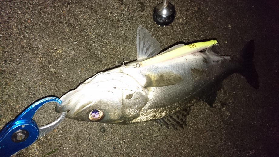 ただ、こいつはシーバスか?? と思っていたら水面にエラ洗いらしき、バシャッ!