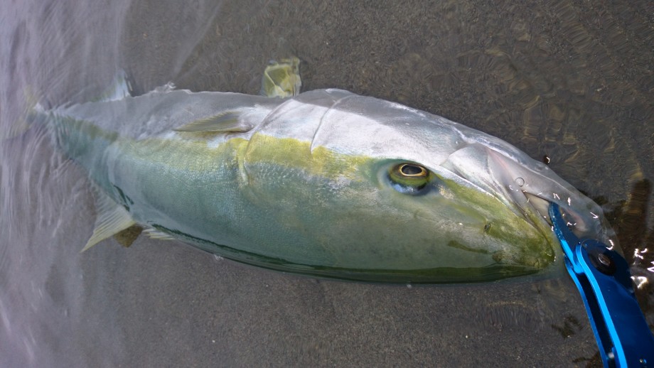 結局、20分ほどかな?ファイトして、ようやく見えて、浅瀬に上げると,,,鰤やん! ブリブリやん!