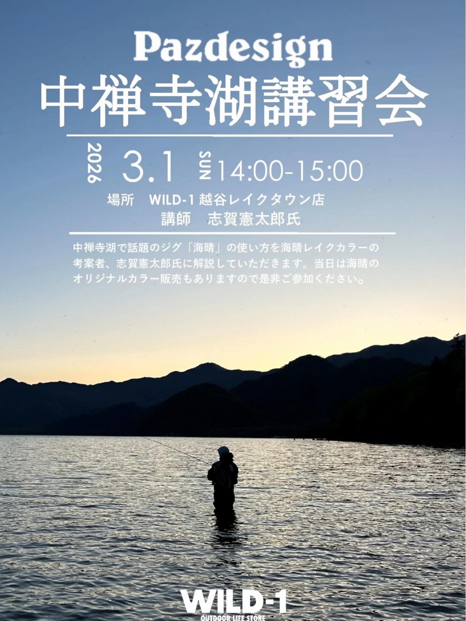 今週末日曜日はWILD-1越谷レイクタウン店様にて【パズデザイン 中禅寺湖講習会】を開催します!!