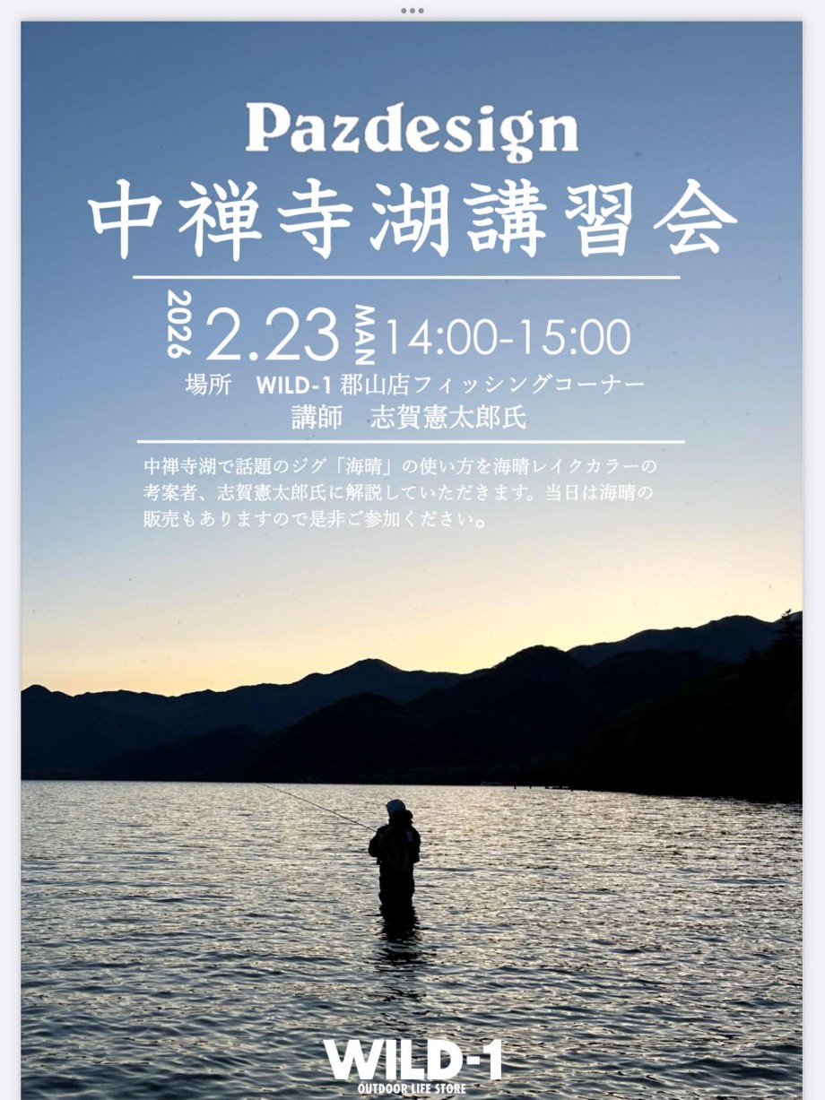 3連休最終日はWILD-1郡山店様にて【パズデザイン 中禅寺湖講習会】を開催します!!