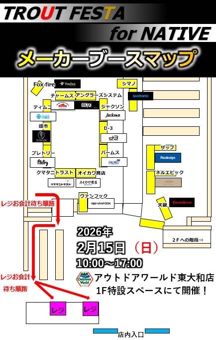 今週末はアウトドアワールド東大和店様にて【西東京トラウトフェスタforネイティブ】に出展します!!