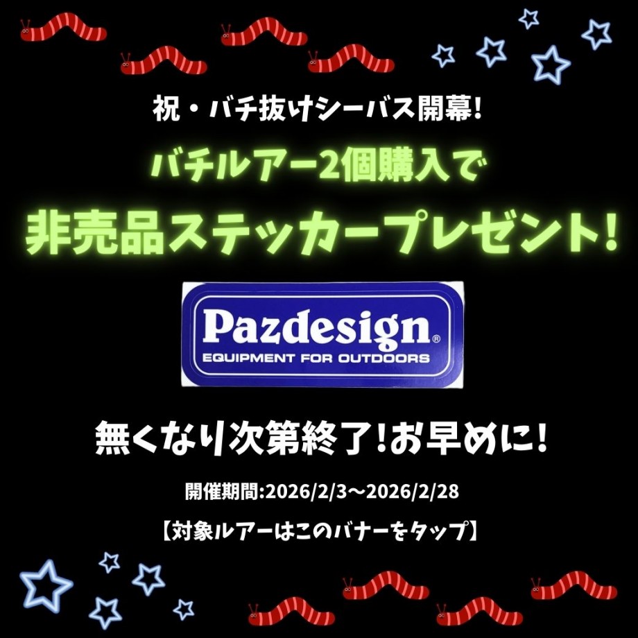 なので、キングフィッシャー様の店頭在庫、もしくはPazdesign公式WEBショップでのお買い上げ分がステッカープレゼントの対象です!!